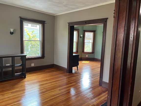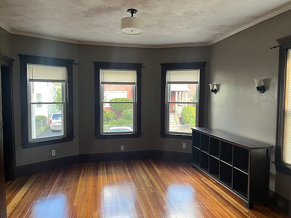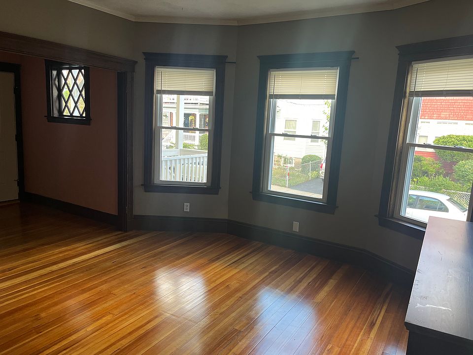 Spacious 1st floor apartment on Royal Street, 1150 sf, 5 rooms, 2 bedrooms, large private back porch. Freshly renovated with updated kitchen and bath. All new appliances. New central air, heat pump and AC air conditioning. New insulated windows. Large dining room with walk-through butler's pantry. 9 foot ceilings. Great natural light. Royal Street is a great location and a fully walkable residential neighborhood! Grocery stores (Trader Joe's, Star, Stop&Shop, Whole Foods), Harvard/Brighton Ave restaurants, shopping, Harvard Allston campus, Allston Public Library, the T (66 and 86 buses, short walk to Green Line B or Red Line Harvard Square) and other transportation (Allston Landing commuter stop, I-90 Mass Pike) are all very convenient. Tandem driveway parking available. Tenant is responsible for natural gas and electric service. Owner pays for water, sewer, and garbage service. One year lease is preferred, but dates are negotiable. Security deposit and last month's rent due at signing. No broker's fees. No smoking on premises.