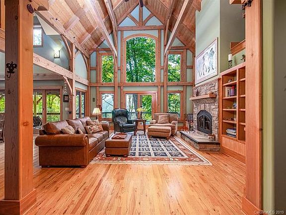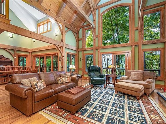Architecturally designed and custom built "Timberpeg" post and beam home beautifully blended with Arts & Crafts design details. On 10 private acres at road's end and situated perfectly for long range Blue Ridge mountain vistas, seclusion and starry nights. Open floor plan and vaulted great room fill the home with natural light. Exquisite interior details include custom cabinetry, locally crafted wrought iron details and pottery sink. Enjoy the peaceful outdoors on the extensive decks and a screened porch. Elevator, home Theater room and wet bar are some of the many features you will find in attached list. 20 mins to Fairview of Black Mountain Communities and a short distance to Lake Lure & Chimney Rock. PERFECT for vacation rental investment.