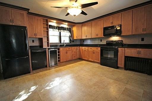 WOW! You will love stepping through the Frank Lloyd Wright inspired door into the spacious, tastefully remodeled kitchen featuring maple cabinets with soft close drawers, granite countertops, stylish back splash, built-in shelves and convenient appliances including a wine fridge and microwave/convection/hood. Entertaining is a breeze in the large living room open to the dining room and entrance hall off the 3 season wrap around porch. The upstairs full bath features Swanstone tub surround with matching vanity top. The walkout lower level includes an office/play room with two fullsize windows, and plenty of storage. Large, sunny, fenced yard perfect for relaxing, playing or gardening. Additional features include 1st floor laundry (washer and dryer included), gas line into home, new driveway (2016), updated electrical, and many newer windows. Great location near shopping, New England Sports Center ice skate rink facility and commuter routes.