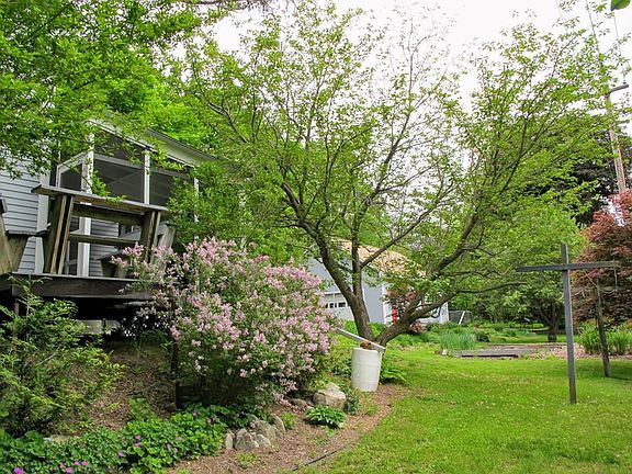 This 1850's farmhouse was one of the original homes in the now Ryan Rd area. Owned for 40 years, the seller has thoughtfully updated and remodeled through the ownership. There is a beautiful and bright kitchen with cherry cabinetry, gas cooktop, dishwasher, and large Kitchen Aid refrigerator. The living room is south facing and overlooks the wonderful backyard with many areas of perennials and plantings, raised beds, fruit and ornamental trees. The rest of the main level offers a full bath, dining room, bedroom, and access to the screened porch off the kitchen. The 2nd level has 2 bedrooms and a study/office area all with hardwood flooring. Updated heating with a Carrier gas FHA system that is A/C ready, a 200 amp electric system, a gas fired Rinnai tankless hot water heater, and a laundry that's complete with a dog wash sink and sprayer! The 2 car garage has extra storage above and has a separate workshop/studio with it's own entrance that is sure to have some uses. A lovely home...