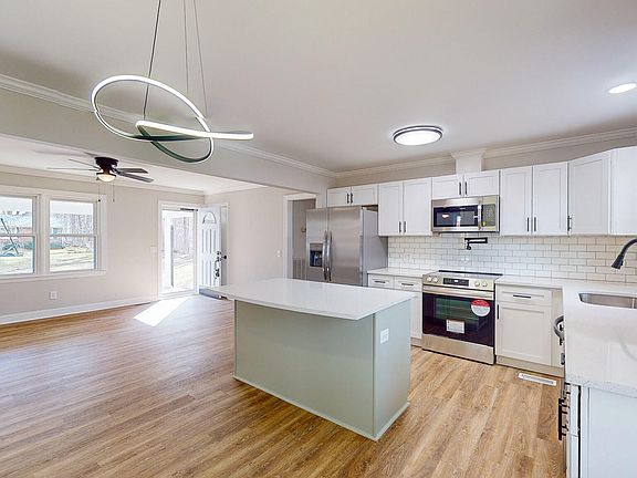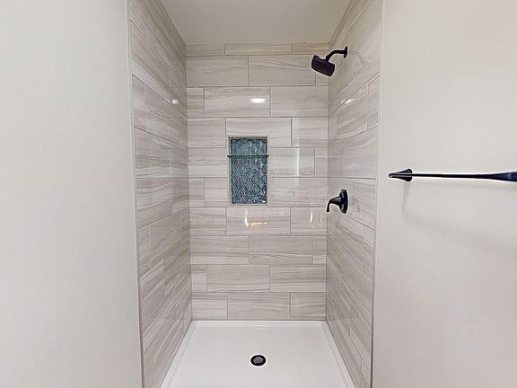 - Ceiling Fan(s), Kitchen Island, Open Floorplan, Quartz Counters, Walk-In Shower