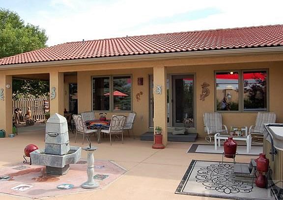 Lovely condition newer patio home near the golf course, library and shopping in Pueblo West. Well laid out main floor with a spacious kitchen, dining nook and space in the living room for another table if desired. Wrap-around covered patio out back is lovely, and the courtyard area feels peaceful and welcoming....an oasis to enjoy.. Hot tub and main water fountain stay! Easy maintenance back yard with rocks, trees, shrubs and perennials, surrounded by a high stucco courtyard wall. Master bedroom with French door entry, has extra seating area, and a large walk-in closet. In addition to the second bedroom there is a nice sized den/office room. Front yard is completely maintained by the association. Quiet little neighborhood off the beaten track. Basement has a finished room (currently a hobby room) that would make a great man cave!!! with laundry sink and urinal. Rest of basement is unfinished, but has tons of shelving and a work bench that stay with the property. Huge garage (26 x 26 for 676 square feet) with two doors, also has a built-in workbench area. Quality finishes throughout, very well-maintained, and ready for you! Surround sound speakers and player stay in living room. Sellers have loved their back yard for years and years! They invite you to come back after dark and see that there is no lights from the nearby store that you see in the spacious back patio. It is very private and quiet there.
