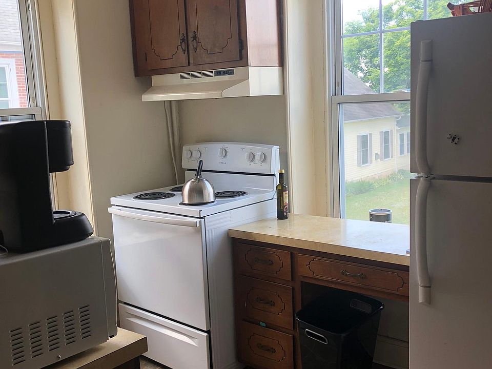 2nd floor apartment. One bedroom, living room, eat-in kitchen, one bath. Off street parking. Wall-to-wall carpeting. No pets and no smoking. Tenant pays electric and trash. Landlord pays heat, water, sewer.