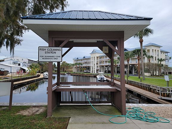 SUWANNEE COVE CONDOMINIUM - One of the BEST units in SUWANNEE partially furnished! This gorgeous condo has numerous upgrades throughout. Kitchen has GRANITE countertops & sink, Tile backsplash, Kitchen Aide stainless steel double oven, and SXS Stainless Steel Refrigerator with bottom drawer. Upgraded crown molding in all rooms, custom window trim, light fixtures and switches, patio tile, and Plantation Shutters. Unit has NEW microwave, hot water heater & newly painted. The floors have hand-scapped wood in living area and bedrooms. Condo unit includes a boat slip for easy access to the Suwannee River and the Gulf of Mexico. Suwannee Cove Condo owners have access to the Pool and elevators for convenient loading and unloading. Covered parking under units