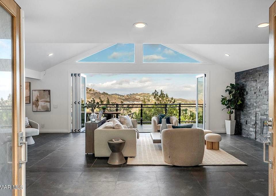 Luxurious Canyon Living with Spectacular Views & Premier Amenities. Nestled within the exclusive gated community of Bell Canyon, this extraordinary home offers a seamless blend of modern luxury and natural beauty. Boasting breathtaking panoramic views, this meticulously designed residence is an entertainer's dream, featuring an open-concept floor plan, soaring vaulted ceilings, and floor-to-ceiling glass doors that bring the outdoors in. The chef's kitchen is a masterpiece, complete with sleek quartz countertops, custom white cabinetry, high-end stainless-steel appliances, and a massive center island perfect for gatherings. The adjoining dining and living areas flow effortlessly to an expansive outdoor terrace, offering the ideal setting for alfresco dining while enjoying the serene canyon backdrop. Retreat to the spacious primary suite, where floor-to-ceiling windows frame stunning canyon vistas. The spa-like en-suite bath includes a soaking tub, oversized walk-in shower, and dual vanities. Additional bedrooms provide ample space for family, guests, or a home office.Downstairs, a versatile bonus area awaits ideal for a gym or creative studio. The home also includes a beautifully designed laundry room, wine cellar and abundant storage. Experience the best of Bell Canyon's premier amenities, including: 24-hour guard-gated security, Over 26 miles of private hiking and equestrian trails, Historic Bell Canyon Equestrian Center with boarding facilities, Community events, including the Halloween Parade, New Year's Eve Party & Food Truck Rallies. Tennis and pickleball courts. Private gym and fitness center. Access to award-winning Las Virgenes schools. Located just minutes from the vibrant city life of Los Angeles while offering the tranquility of country living, this home presents an unparalleled opportunity to embrace the best of both worlds.