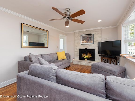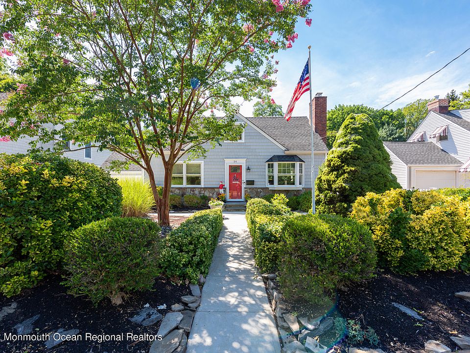 Create your new life and feel right at home in this lovely cape nestled on a peaceful, sought-after, dead-end street. Bright and sunny updated country kitchen with lots of granite counter space and stainless appliances. Living room features a gas fireplace, recessed lighting and a bright bay window. Two first floor bedrooms can also serve as office, den, or dining. Private second floor bedroom suite with full bath. Hardwood floors, custom blinds, updated windows, newer bathrooms, a partially finished basement and lots of storage. Private backyard oasis with beautiful trees and shrubs and a newly installed paver patio, perfect for gatherings, make this home a terrific find for your forever home. Great schools, close proximity to Red Bank shopping, beaches, trains and ferries.
