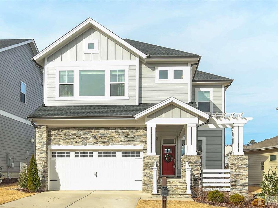 This like new home in Briar Chapel has it all! Unique pergola entryway, engineered hardwoods, covered back deck, quartz countertop and upgraded appliances wrap up the perfect floor plan. 3 bedrooms upstairs with a loft/bonus room that can be used as an office or additional living space. Full sized laundry room upstairs. Beautiful upgrades throughout including additional windows along the kitchen wall and high-end lighting and finishes.