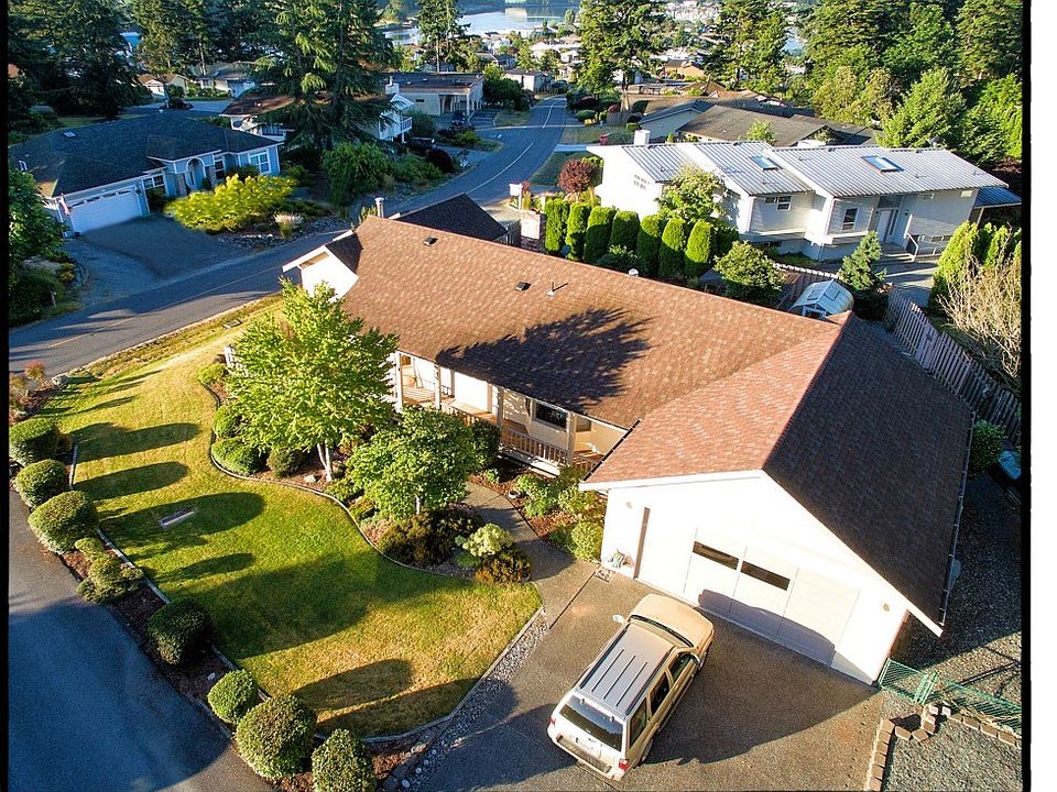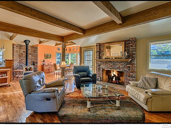 Enjoy an abundance of natural sunlight filtering through the massive windows & skylights of your custom built rambler w/exposed beams solid oak hardwood flooring & architecturally pleasing clearstory ceilings. Entertain friends in the great room with two fireplaces, or enjoy meals on the sunny deck off the kitchen or main deck with the southern exposure. Greenhouse; raised flower beds; fully fenced back yard; gazebo; Shop; separate utility room; sewing room; den; moorage, and swimming pools.