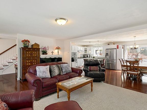 5 year young colonial with attached two car garage in premier location at Maplewood Estates! This colonial situated at the end of a cul de sac backs up to conservation land and offers an open floor plan, central AC and gleaming cherry hardwood floors. The main level has a living room with gas fireplace and plantation shutters leading to lovely dining area with slider access to the deck. The kitchen impresses with stainless steel appliances, island, glass-tile backsplash and granite countertops. A half bath and separate walk-in pantry complete the main level. Upstairs you'll find a full bath and three carpeted bedrooms including a master suite with double closets and a private bath with double vanity. Some other highlights of this home include second-floor laundry, generous closet and storage space, outdoor space with shed and rear deck leading to the newly installed, spacious brick patio. Great location located conveniently close to Route 3, commuter rail and a short drive to Cape Cod!