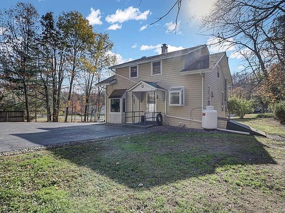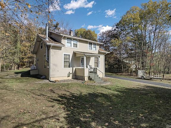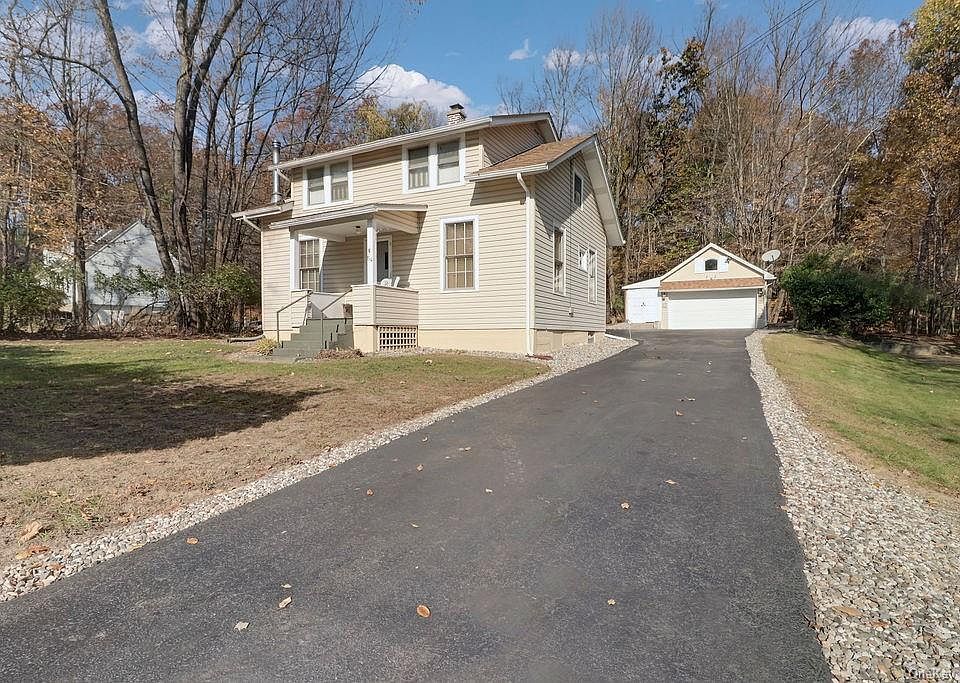 This meticulously maintained, charming, 2 bedroom, 1.5 bathroom home on a double lot sits on the outskirts of the Village of Otisville in Minisink School District. The main floor of the home consists of a eat-in kitchen/dining area with amble space and natural lighting and a cozy but spacious living room, complete with a wood burning stove and a half bath. The boxed window frames in the kitchen offer a quaint, country charm. The upstairs living area includes a generously sized master bedroom, a roomy second bedroom, full bath including a soaking tub and shower and plenty of storage space. The detached garage has both cable and electric and room to park a car, toys or use it as a workshop. Storage off the side is great to keep stacked wood dry! Electric is set and in place to put in your own pool or hot tub too! Boiler replaced in 2020, water heater replaced in 2021. Close to town parks, village shops and train station. Less than 65mi to the GWB. Taxes do not reflect STAR credit of $747