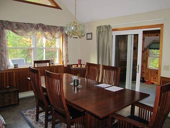 Beautiful private setting only 5 minutes from I-89! Over 7 acres of open yard and woods. Lots of wildlife. Open contemporary home with a fireplace and a gas stove. Multiple enclosed porches. Fenced area for pets and a sunny deck overlooking the large yard.