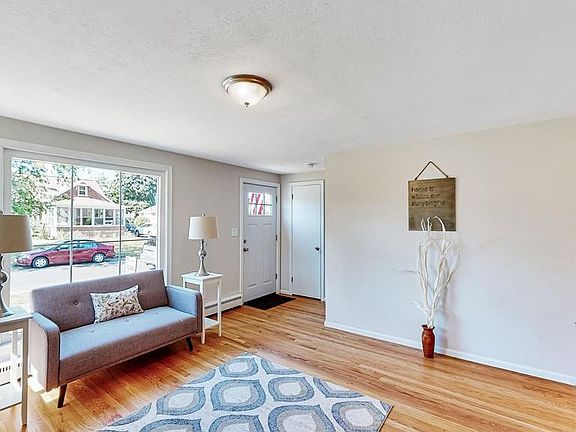 Find yourself at home in this lovely remodeled Cape. The 1st floor boasts a sun-drenched living room w/ hardwood floors that lead to a spacious kitchen which has been beautifully redesigned with S.S appliances, granite counter tops, stunning backslash, and is large enough for a big kitchen table. The perfect spot for gathering around a scrumptious meal. Brand new main floor bath with tile, new tub & vanity & 2 bedrooms complete this level. The 2nd floor features two more spacious bedrooms with ample closet space and new carpeting. In the basement you will find a partially finished space perfect for lounging and watching a movie or curling up with a good book. Kitchen leads you outside to your own backyard retreat where outdoor maintenance is both minimal and enjoyable. Enjoy a BBQ and some cool shade under your covered patio. Detached garage is an added bonus. New roof & gutters. Close to shopping, schools & highway. Beautiful property with privacy, yet convenience.