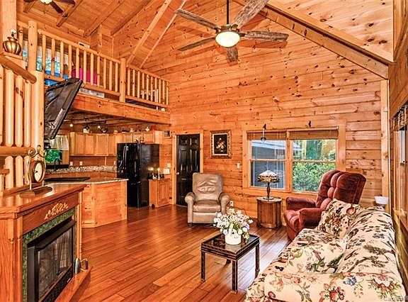 Log cabin at Lake Adger's Westridge community. Within 1 mile of the the public marina on Silver Ridge Road. Two bedrooms on the main floor, huge Master suite and loft upstairs. Master bedroom doors open to a balcony where you can watch the sun set. Beautiful granite counter-tops kitchen with gas downdraft stove. FULL unfinished walk-out Basement. 3.5 acres with abundant landscaping including flowering bushes, fruit and nut trees. Full length covered deck front and rear plus a lower level patio.