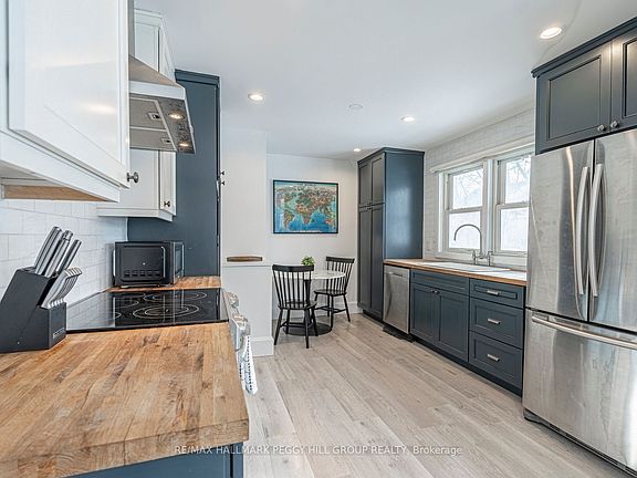 Stunning main-floorOpen-concept layoutModern decorCustom kitchenQuality finishesButcher block countertopsGas fireplace