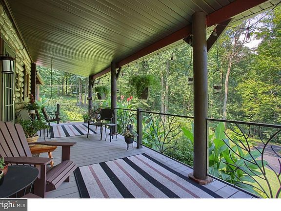 Motivated Seller - Beautiful 3-4 BR log home with huge detached brick garage (with stable/hay loft) located on a private wooded 5 acre lot, with additional separately deeded 2.51 acre building lot bordering Camp Adahi......Continue up the macadam driveway and you'll fall in love with the serene setting and lovely mature landscaping with stone walkways and walls. The main house has a 1-car basement garage for a small car, if needed. As you walk toward the home, you'll walk over a brick paver patio which leads you to the full covered front porch with custom iron railings. Enter the front door and see the custom handmade black walnut tiled kitchen with granite counter tops, a center peninsula and a cheery informal dining area with a coffee bar. Beyond that is the open beam ceiling of the cozy family room featuring a bay window and laminate wood floors. Continue on into a large remodeled laundry room with a custom tiled floor, laundry shoot and built-in cabinetry with rear access to the pool area and yard. Back track and you'll find two spacious bedrooms with large closets that are serviced by a lovely remodeled tiled bath with shower and solid oak vanity top. Continue to the other side of the main level and focus on the spacious great room boasting a custom stained glass window, a cathedral ceiling with 2 skylights and a view of an open staircase leading to a loft which would make a great place to relax and read. Pass through the dining room and open the French doors which lead you to the in-ground pool area, complete with cement patio-surround, pergola and stone fire pit with seating. The upper level boasts a private area which could be used as a nursery/office/4th bedroom and a spacious master suite featuring a full tiled bath and shower with double tiled vanity, two walk-in closets, a huge linen closet and access to a large attic space. The unfinished basement has plenty of room for a workshop and loads of storage, in addition to a huge crawl space which is un