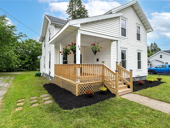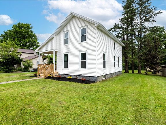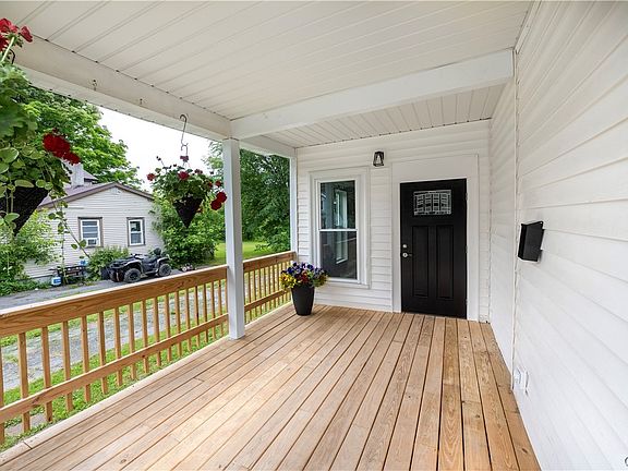 Welcome Home! This fully renovated farmhouse has been brought back to life and is ready for you to move right in! This home features an open floor concept; kitchen, dining and Livingroom combo makes for a great entertaining space. Kitchen comes equip with all new appliances and beautiful navy cabinets. The first floor provides a primary bedroom with suite, first floor laundry and a second full bath! Second floor consists of three spacious bedrooms and one full bath. Back enclosed porch has been left a blank canvas, could be used as a mudroom, seating area or additional storage. Newly framed and stoned exterior area would be perfect for a carport or firepit area. Enjoy relaxing on the new front porch or cool off inside with the newly installed central air! Large backyard with endless options. Village living at its finest, close to shops, restaurants, 81 and Fort Drum. Taxes shown without exemptions. The only thing this house is missing is you!