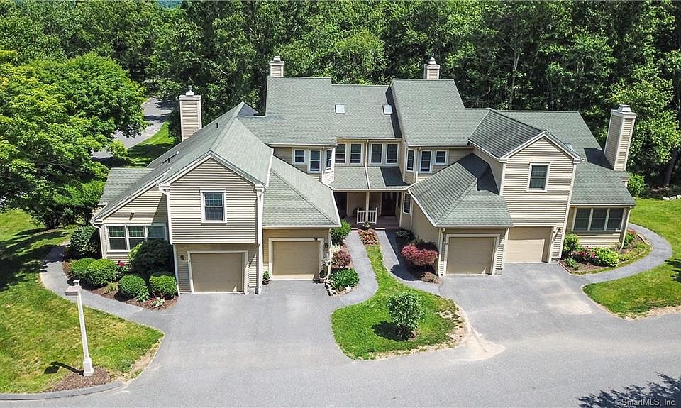 In New Milford, with access to private beach on Candlewood Lake is a 2 bedroom 2.5 bath 1258+ sqft townhouse with 1 car attached garage & community inground pool. As you enter you wander by the beautiful porch entryway with gorgeous flowers/plantings. Warmth greats you with a semi open concept first floor with tiled foyer, powder half both,access eat in kitchen, formal dining room, & a big living room that features hardwood, fireplace w mantle and sliders to large deck. Retire upstairs to a huge master bedroom suite w walk-in closet & masterbath, washer & dryer in hall closet, large 2nd bedroom & office area with skylight. Completely finished lower level with family room, mechanicals in workshop room,& Private gym room w tons of storage, walkout sliders to patio under deck. Truly a gem waiting to be yours. Special assessment of $117 for the paving project done in the past and the assessment would go until November 2023.