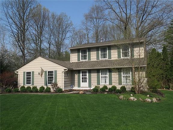 Don't let this one slip by! 3BR Colonial, built 1977, approx. 1800SF (town records 1750), full finished lower level, fire placed family room, huge country kitchen with breakfast bar and built in desk. Generous amount of counter space-cooks delight! Private wooded backyard-sit on your deck or swim in your pool in privacy. Hardwoods in kitchen and dining. Minutes to Chili Center and I-390. New tear off roof 2016. Furnace age 2003. First OPEN 5/21 from 2-4PM.