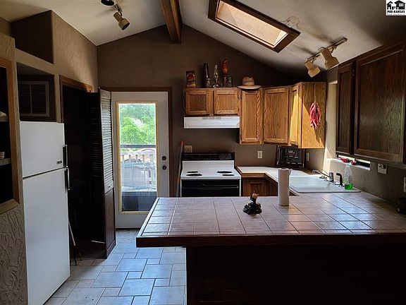 Oh the possibilities! Brand new septic and 2 additional lots are a part of this sale! Great entertaining spaces in this home at Kanopolis Lake - upper deck, lower deck, hot tub, and fireplace on the patio. Separate guest house with a full bath. Room for 2 cars and a boat under the carport, as well as a single car garage. Summer is just getting started - spend it at THE LAKE!