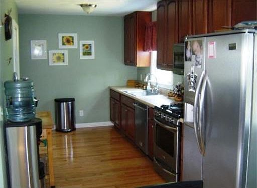 This awesome first time buyer home, close to route 3A and the Manchester airport, has been freshly painted with upgraded, fully-applianced kitchen boasting SS appliances, and hardwood flooring opening to dining area. New vinyl windows throughout, newer vinyl siding, furnace and roof, and brand new 200 Amp electric. 3 generous bedrooms, two with hardwood flooring and huge inviting living room. Level and cleared back yard, and close to schools & major rtes. Home SWEET Home!