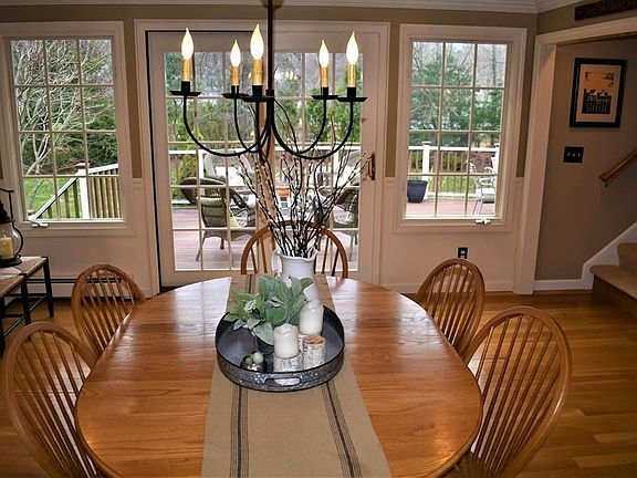 - Din Dscrp: Flooring - Hardwood, Wainscoting, Exterior Access, Open Floor Plan, Slider, Crown Molding