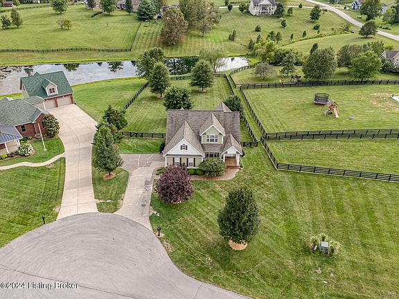 SPACIOUS HOME WITH MOTHER IN LAW SUITE AND WATERFRONT VIEWS! Discover the perfect blend of country charm and modern convenience in this exquisite four-bedroom, four-bath estate, featuring a fully equipped mother-in-law suite in the prestigious Fox Layer neighborhood. Nestled on a quiet cul-de-sac with breathtaking pond views, this home offers an ideal setup for multi-generational living or hosting long-term guests. To help make this home your own Seller will replace all carpeting (bedrooms) prior to close. Buyer may pick the color. Step into the grand foyer and be captivated by the soaring vaulted ceilings and floor-to-ceiling windows in the great room, flooding the space with natural light. Elegant hardwood floors, a cozy fireplace which create an inviting and sophisticated atmosphere. complete with granite countertops, stainless steel appliances, a breakfast bar, and charming wainscoting. The main-level primary suite is a luxurious retreat, featuring vaulted ceilings, large windows with views of the lake, and a spa-like ensuite bath with a jetted tub, walk-in shower, double vanity, and private water closet. A half-bath and laundry/mudroom complete this level. Upstairs, two spacious bedrooms including one with dramatic vaulted ceilings offer ample closet space and share a full bath. The walk-out lower level is a game-changer, offering a private mother-in-law suite with its own full kitchen, family room with a fireplace, bedroom, and full bath. This versatile space is ideal for extended family, a live-in caregiver, or even a rental opportunity. Enjoy the peaceful, tree-lined backyard and views of the lake from your covered balcony, or relax by the fire pit beside the pond, taking in the serene surroundings. Despite its tranquil setting, this home is conveniently located: Less than 15 minutes to Walmart, Gene Snyder Freeway or Taylorsville Lake, 30 minutes to Muhammad Ali International Airport. Additional updates include solar panels, fresh interior & exterior paint, and classic four-board fencing. Don't miss out on this rare opportunity for elegant country living with all the conveniences of the city nearby. Schedule your private tour today!
