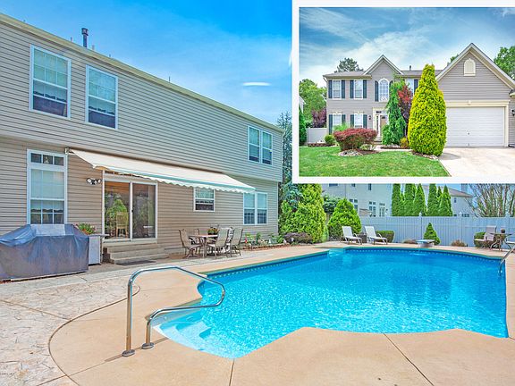 Paradise found in sought-after Berkeley Woods !! Your personal resort awaits . . . Lovingly maintained 4 bedrm, 2.5 bath ''Victoria'' model colonial complete with full finished, freshly painted, basement & convenient 2-car garage. Premium lot, backs to wooded area, offering private serenity. Enjoy summer days in your in-ground, salt water, heated pool featuring waterfall & beautiful brand new liner. Lovely designer patio boasts stamped/color concrete. Elegant 2-story foyer featuring lovely sweeping staircase. Kitchen offers hardwood flooring, center island & pantry, flowing into Family Rm with gas fireplace; Ideal floorplan for entertaining. Dining Rm boasts tray ceiling, crown molding. Spacious Master Bedrm features walk-in closet & master bath with soaking tub, shower stall