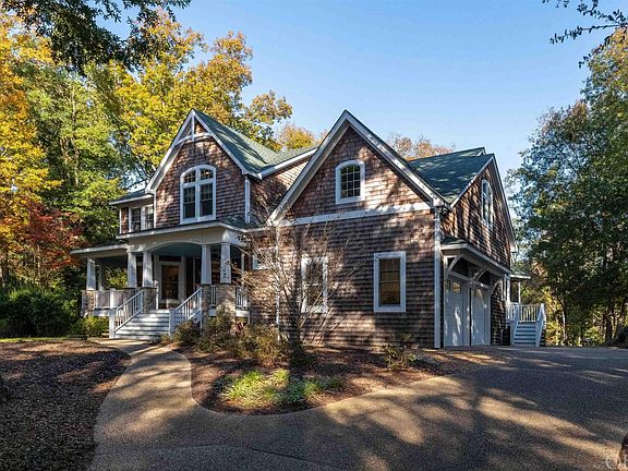 HUGE PRICE REDUCTION!! Spectacular Waterfront Custom Built home in the sought after Chicahauk Subdivision of Southern Shores - can be yours! This home includes impressive architectural features; extensive moldings; natural lighting; wrap front porch; gorgeous hardwood flooring; rear decking and patio; huge screened-in porch with dining area; lovely outdoor spaces, along with beautiful views of the water. Enjoy boating and paddle boarding right off your very own dock! This quality built construction was completed in 2014, by Albemarle Contractors Inc., Joe & Lori McGraw. The First Floor Features include: A Family room; dining room; office; kitchen; large pantry; primary bedroom with gorgeous bath and two closets/organizers; powder room; laundry room; and full bath off the screened porch just right for beachgoers and sports-enthusiasts who like to clean up, prior to coming inside. Second Floor Features: Generously sized bedrooms – with large closets with organizers. A Full Bath with double sink vanity, shower and linen closet. A HUGE Bonus Room with counter top; beverage refrigerator; PLUS a separate room - currently used as an office with pocket door; plus two large closets; humidity controlled attic spaces and eaves storage. The TWO CAR (extra depth) GARAGE and a WORKSHOP has built-in closets and shelving for storage. The Bulkhead and Dock are equipped with electricity and water – also lighted stairs and lighted pilings. Six zone irrigation system. All of these awesome amenities are on a beautifully landscaped, wooded, .76 acre lot in a tranquil traffic-free area. The Chicahauk Subdivision has tennis courts, playgrounds, walking trails, social events, private beach access and more! The Town of Southern Shores has excellent schools. Offers a series of canals leading to the Currituck Sound. Join the Voluntary Civic Association. Your membership provides access to numerous private beaches around town. Two Marina’s w/boat slips for rent and boat launch areas; playgrounds; fields; tennis; (pickleball coming) socials; and many other wonderful events to meet new neighbor’s and friends. This home is within .7 miles to beach access; has a straight shot to the Southern Shores Shopping Center: Home Depot, Walmart, 2 Grocery Stores, CVS, Restaurants; Duck Woods Country Club and so much more! With so many special details inside and out, you will love touring this beautiful home and want to make it your own… Call for a private showing today!