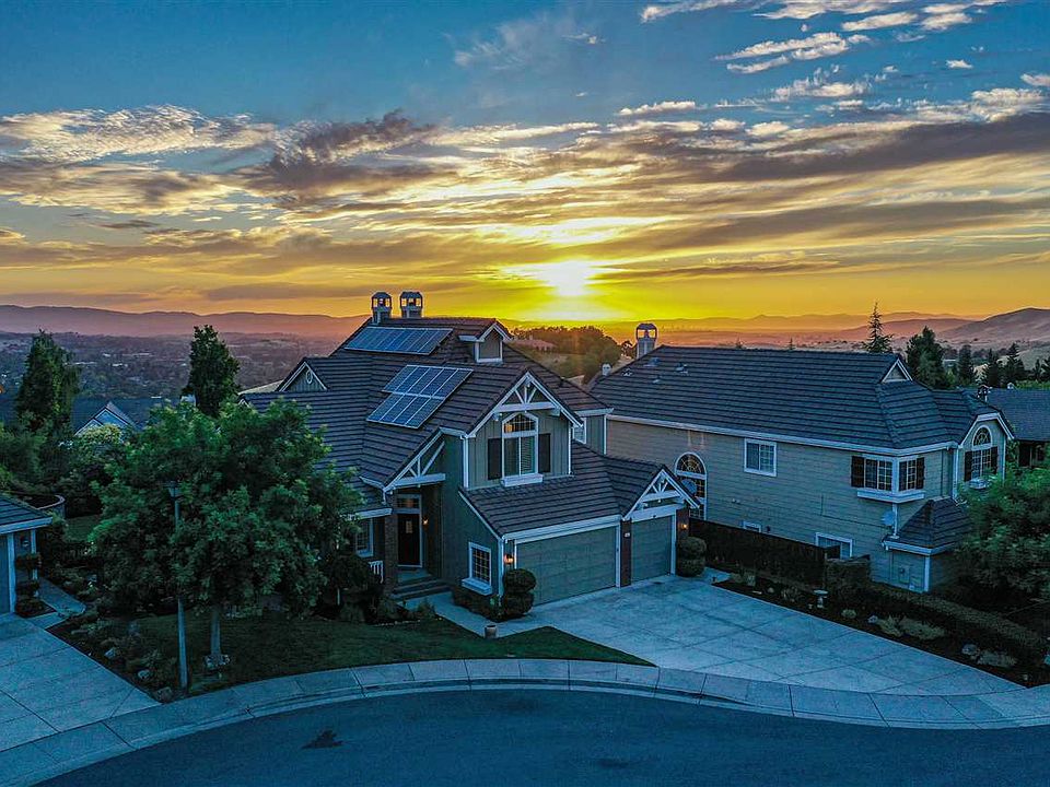 Sitting atop Eagle Peak on a private cul-de-sac, this property has sweeping views of the surrounding rolling hills, city lights & the Carquinez Strait. An inviting living room, dining room, & family room compliment the center island kitchen & provide ample space to host large dinner parties. The aspiring home cook will be delighted w/the fabulous Chefs Kitchen featuring GE Monogram SS appliances, granite countertops, large center island, a built-in wine fridge & wet bar & ample sized walk-in pantry. The master bedroom suite includes a spa-like retreat that allows you to catch some amazing sunsets while relaxing in your jetted tub. There is a large flat backyard with generous lawn & patio areas, as well as a raised vegetable planter box & electrical for a hot tub. This home has all the modern conveniences - Solar, Nest thermostats & doorbell, Rachio Sprinkler systems, plantation shutters & more...Don't miss this spectacular two story home located in the desirable Oakhurst Country Club.