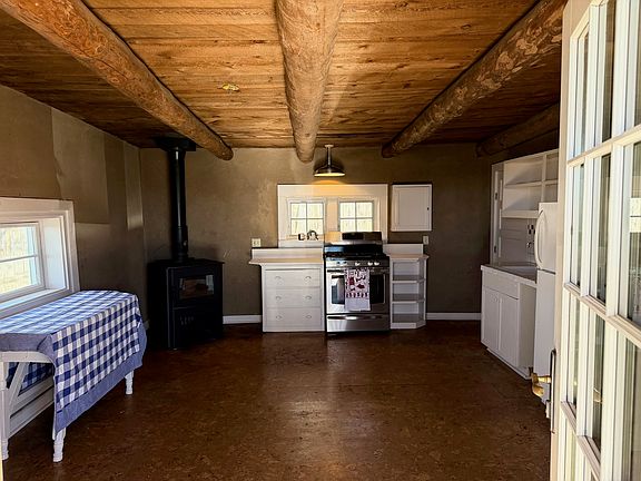 The Real Deal! A rare chance to own a true piece of Taos history. This 100-year-old, 2 bed/1 bath adobe home blends original mud-brick construction with glowing wood stoves, Viga ceiling beams, wood floors, thick walls, shade trees and a long covered portal. Located off the coveted Valdez Rim Rd at the gateway to Taos Ski Valley and snuggled into historic agricultural land, this little retreat will take you back in time. To simpler times in a setting that feels worlds away. The bath has been remodeled and features a tiled shower/tub, built-in shelves and a washer/dryer. There is a combination of baseboard heat and two woodstoves- one in the primary bedroom and a large one in the kitchen. This house is attached to the Upper Des Montes MDWCA Community water system and has a holding tank septic. If patina'd wood floors, thick adobe walls, wood framed windows, gracefully bowing vigas and crackling woodstoves are your thing, you have found it here. Weekend ski cabin or forever home, you decide. Classic. Authentic. Traditional. Timeless.