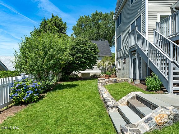 Sunny tri-level ADA accessible smart home lives like a single family home with all the ease of a condo. Set back from the road, this 3 bed, 3 full + 2 half home features elevator, 9' ceilings throughout, full house generator, town utilities, lutron lighting, level backyard and 2 car garage. High end custom kitchen with pantry. Fully finished walkout lower level outfitted as an office with multiple work spaces, half bathroom + kitchenette with french doors to the fenced yard. Mudroom with separate entrance and elevator to office in lower level. Sitting room upstairs can be used as a 4th bedroom. Large elevator opens to all 3 floors. Ample storage throughout, including a walk-in closet in the primary. Updated systems. Sidewalks to Cos Cob and Central schools, library and downtown Cos Cob.