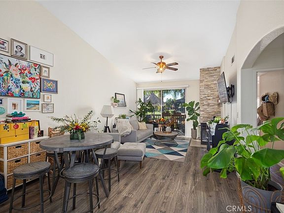 Come and enjoy your sunset and gold course views in this recently remodeled gem located in Rancho Santa Margarita's - Alicante community. This home features an open floor plan, large kitchen, dining and living room combo with a private stack stone fireplace. Newly painted and new wood flooring completed. Two bedrooms and two bathrooms plus indoor laundry are included. The private deck can be accessed from the master bedroom and the main living room. Enjoy your morning coffee overlooking the pool and golf course or enjoy a cocktail watching the sunset. Truly a blessing either way. The home includes two community pools, gym, bbq area, park, 1 carport spot, 1 single car detached garage and open space parking. Trash included in HOA