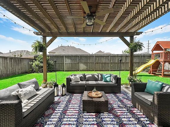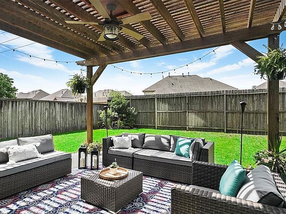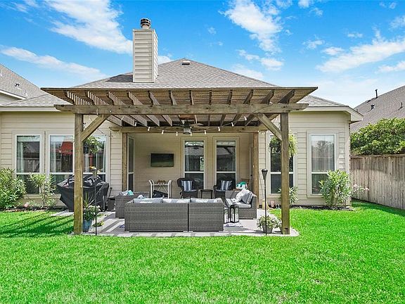 Gorgeous 1.5 story home backing to green space - Privacy in back!! Not one window overlooks this backyard. Stately stone and stucco home features 3 bedrooms with 3 full baths, huge gameroom or bedroom up w full bath and closet. Custom features throughout. Chef Style island kitchen open to family room lined with wall of windows gazing to backyard paradise. large master suite and serene master bath and custom ELFA closet. versatile floor plan offer so much. backyard covered pergola and custom landscaping lends the perfect place to relax. dont miss this home call know for a tour