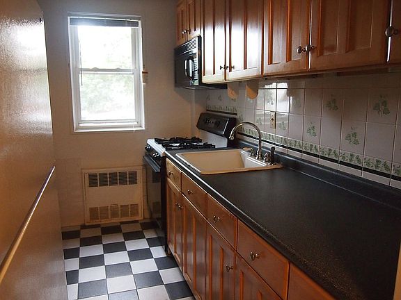 Updated, spacious studio with new bathroom, updated kitchen, large living-room with wood floors, tons of closet space. Well maintained building with laundry room, community room, off street parking, sitting area in backyard. Large lobby. This is a coop, common charge includes heat, hot water, cooking gas, tax and parking in lot for one car. Must be owner occupied. Can be financed. Great location, walk to town, train, hospital, schools. Cheaper than renting, have more of your $ go towards saving/living!