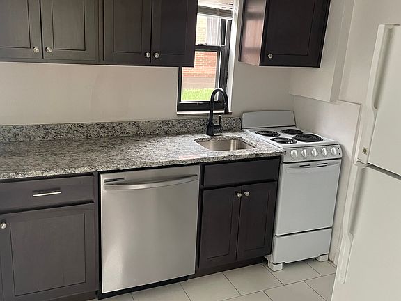 First floor; Newly remodeled 2 Bedroom apartment in a nice, quiet neighborhood. Brand new kitchen cabinets, granite countertops, Samsung stainless steel dishwasher, new flooring, baseboards and paint. Air Conditioning; Security building with coin operated laundry inside the building. Also, apartment specific hookups available for tenant owned machines. Paved, off-street permit parking. Garbage included in rent. No Pets, Must pass credit check. Rent is $925/month plus all utilities. Renter pays all utilities except garbage service. No Pets.