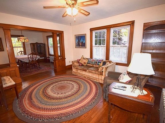 Welcome home to this charming 6 room, 3 bedroom, 1.5 bath Bungalow located on a corner lot in Chicopee Falls. Original woodwork throughout. Living room and dining room are warm and cozy with replacement windows and hardwood floors. Kitchen features eat in area, pantry and tile floor. Second level has three good size bedrooms with walk-in closets and hardwood floors. Home has many replacement windows, a security system, and detached garage with opener. You'll love the Farmer Style Porch enjoying the great outdoors, sipping coffee or your favorite beverage. Home is perfect for a first time Buyer or someone looking to downsize.