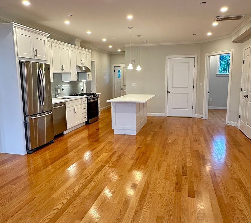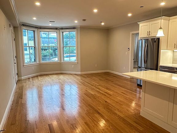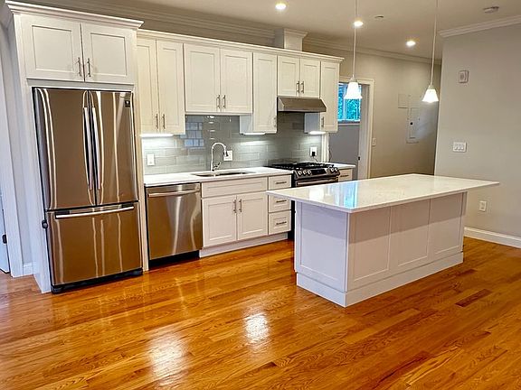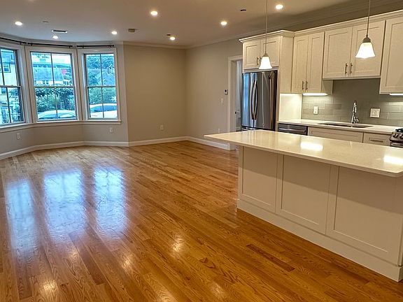 Absolutely stunning, completely modern 3bed/3bath with 2 off-street parking spots. In unit laundry. 1st floor unit in 3unit NEW construction building. Large Bay windows. Walk in closets, hardwood floors, recess lighting, beautiful stainless steel appliances. Large island and huge open layout living room/kitchen. Very high ceilings. Deeded parking spots. Small grilling area in the back. Back porch. Available NOW! No pets. Excellent locations near restaurants, shops and transportation including Boston Landing! Great for commuters! Easy to set up tour. Video tour available upon request. Please call to inquire and set up tour. Tenants pay utilities.