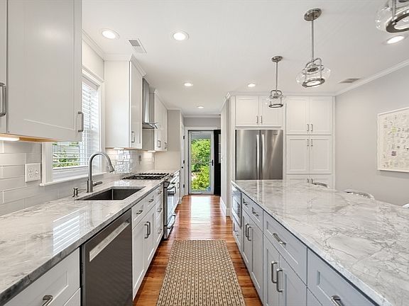 Step into luxury living with this elegant two level condo on a tree lined street in a perfect Arlington location! Meticulously renovated in 2019, this home exudes sophistication and comfort. The open floor plan seamlessly integrates the living, dining, and kitchen areas, showcasing white oak hardwood floors and a handsome gas fireplace. The kitchen boasts a large center island, quartz counters, premium stainless steel appliances, custom cabinetry, glass tile backsplash & a gas range. The first floor primary bedroom features a spa-like en-suite bath and a walk-in closet. The second level of the home has a two additional bedrooms, full bath and an open flex space. Completing this wonderful offering is a first floor office, central AC, in-unit washer/dryer, a covered rear deck and a large driveway with garage parking.This home offers the perfect blend of modern luxury and comfort, with every detail carefully considered. Don't miss this opportunity to make this stunning home your own.