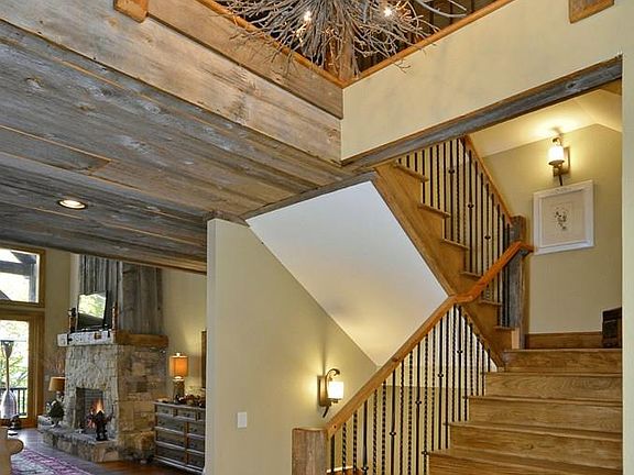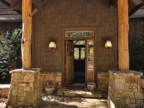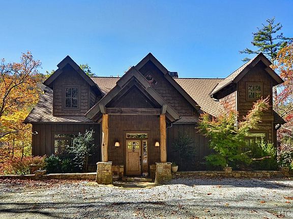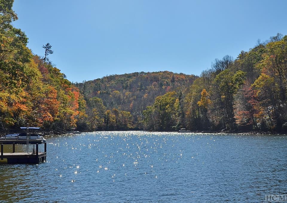Magnificent scenery, cool temperatures and the occasional white squirrel highlight the short drive from the Cashiers Crossroads to this gorgeous waterfront mountain home on the east side of Lake Glenville. High style begins with cedar shake siding and an inviting stone entry, leading to an elegant and rustic interior with eight-foot doorways, oak floors, neutral colors, exposed beams, and reclaimed barnwood lining the soaring ceilings. For effortless entertaining, the chef's kitchen complete with fine cabinetry, premium appliances and granite countertops is central to the floor plan. An impressive stacked stone fireplace is the focal point of the great room, which opens to a large back deck with the sparkling waters of the lake below. A stepping stone path lines the way to tiered gardening and sitting areas and the private dock. Located on the main level, the large master suite has its own stone fireplace and double doors to the back deck. The master bath includes dual sinks, a jetted soaking tub, separate toilet room and walk-in shower. The main stairway adds visual interest with a mixture of wood and iron work and leads upstairs to a sitting area, office/playroom and a full bath. Downstairs, a great entertaining area with wet bar connects two spacious guest suites, each with access to the middle porch and lake. On the lowest level is a fully encapsulated, unfinished area that could be used for water toy storage or a lake/mud room. Family and guests of all ages will love this paradise getaway with so many activities to enjoy such as boating, swimming, fishing, canoeing, picnicking, hiking and more!