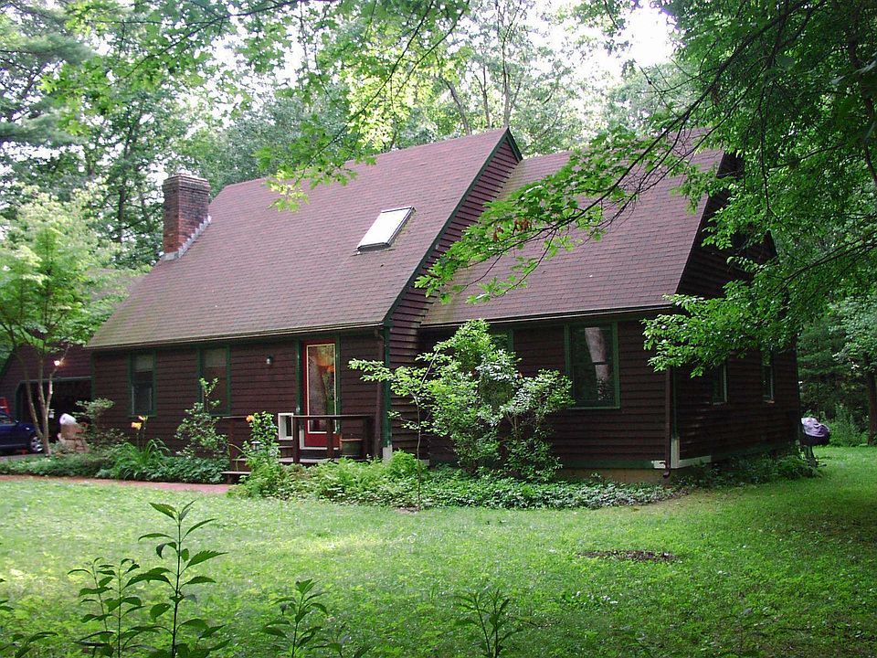 Four bedroom Amherst Woods Cape is tucked away in a private wooded lot. Spacious living room features fireplace, cherry stairway and floors and a dining area with views of deck and gardens. Large newly-tiled mudroom is well suited for the active lifestyle. Private screened porch features five-seat hot tub and hard wood floors. Two full baths. New walnut and bamboo flooring in bedrooms. Cherry floors to be refinished prior to closing.