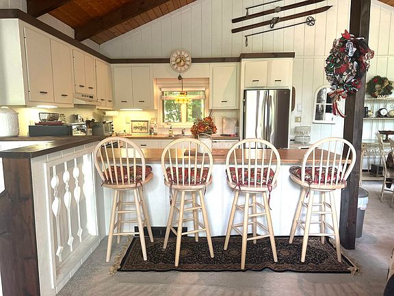 This charming, bright and well-maintained chalet is located in low-tax Bartlett’s desirable Linderhof neighborhood. This warm chalet was built and is still owned by the original owners. The entire home is double insulated in the walls, and the ground flooring creating a warm and dry feel all year long and very easy to heat in the winter. There is a large driveway to accommodate many guests and your snowmobile trailer or to build a shed or expand. There are winter views of the mountains. The main level is open concept with a beautiful wall of windows. Enjoy the warmth from your wood stove or step right out to your deck which is great for grilling, enjoying the seasonal views of the mountains or simply taking in the peace and quiet. With 3 bedrooms, there is plenty of room to make memories with family and friends. The chalet has 10 Mysa programmable thermostats for baseboard heat in each room. This system may be accessed online and on phone to allow for monitoring heat and maintaining correct temperatures. The system is especially useful in conserving heating costs while simultaneously keeping pipes and home protected from outdoor temperatures in the winter. Turn up the heat before you arrive. Linderhof is centrally located to allow access all of Mount Washington Valley’s great activities. Located next to Storyland. Minutes to shopping in North Conway or skiing at Wildcat Mtn., Attitash, Black Mtn & Cranmore. This is the perfect place to hang your skis for the winter.