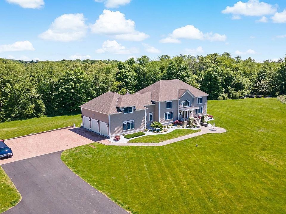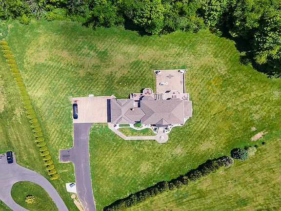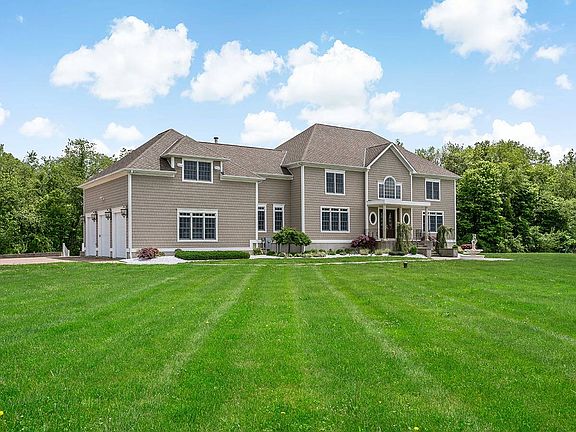 The Long post lighted driveway brings you to this Luxury Property with all the nuances of a home for entertaining! It boasts 3 gourmet kitchens all with granite counter tops. There are 5 Bedroom and 5 Full Bathrooms/1 partial Bathroom. The Main Floor welcomes you with a circular staircase and venetian glass Italian chandelier adorned with a beautiful hand painted ceiling mural. The front foyer is open to the main living room area with its 20 foot ceilings and grand fireplace. The open floor plan leads to the main kitchen with eat-in area, over sized center island with state of the art gas stove and wet bar area.There is a formal dinning area off of the kitchen. The spacious 1st floor master suite with tre ceilings also features a gas fireplace visible to the bedroom and master bedroom. Soak in your corner Jacuzzi tub over looking the 3.94 acres of serenity. Enjoy the massive custom deck built to enjoy from every room on the back side of the house. The walkout basement allows for another entertaining area with full kitchen and bar area to be enjoyed. Also has a full bathroom in the basement. The deck overlooks the ground floor patio area complete with outdoor kitchen and 2 fireplaces. The main floor also has an office with french door entry. Off the kitchen there is a mudroom equipped with laundry room with double washer and dryers, half bathroom which leads to the heated 3 gar garage with in-law apartment above. The in-law suite has a beautiful kitchen with breakfast bar, separate laundry room and full bathroom. Other features are full walk up attic with option to build out for additional living space. All the inside walls and ceilings are insulated for sound reduction and pre wired for speakers volume control in every room and outside as well. This stunning lifestyle home with all it's architectural details and modern conveniences is not to be missed!