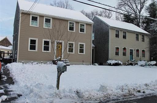 A Must See Colonial home! (duplex side/side full COLONIALS!) with lots of SQ FT for the price& location! ALL APPLIANCES STAY!!!****New VINYL REPLACEMENT windows, completely REMODELED half bath, FINISHED BASEMENT, huge EIK kitchen*PLUS a formal dining room. Comfy L/R on first floor AND family room in the fin. bsmt Private fenced in back yard. Big breezeway. Dead End Street in East Taunton. Very well maintained home. Twn Wtr/Swr*Compared to the others, this house RISES above them all!