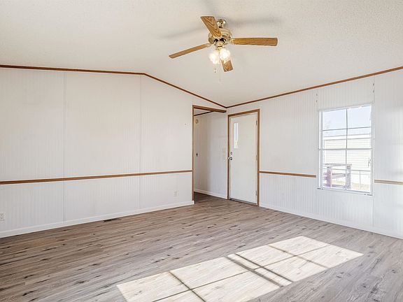 Are you looking for an affordable home with no HOA and a good size lot? This 3 bed 2 bath is on a rented lot from a private owner instead of a park with high HOA fees. This .15 acre lot is in an established subdivision and rent is only $300 a month rent + $24.55 sewer fee. Lease is available for a 5 yr term with a 1st right of refusal so you could have an option to purchase it when they sell the land. Brand new carpet, counters, garbage disposal, and more… Super clean and move in ready!