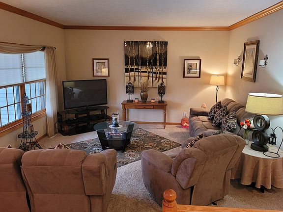 This is a beautiful four bedroom, three bathroom ranch style home. The home has a beautiful, spacious, master suite on the main floor. The master bath features a whirlpool tub, stand alone shower and a large ceiling skylight to give the room the feel of a natural spa. You will also have an additional bedroom and den on the main floor. The den is presently used as a third bedroom and could permanently be used as such, if a closet is added. The kitchen is spacious with a large breakfast bar that can comfortably seat three people. The adjacent dining area has a pleasant, inviting feel with the large windows on three sides of the room. The adjacent four seasons room will make a great place to sit and relax and conveniently leads to the outdoor patio on the back side of the home. If you have the ability to work from home, either the four seasons room or the den will make a great room for your home office. Moving downstairs you will find an area that can easily be used as an apartment or just additional living space. The basement is set up with a large family room with a kitchenette on one end, a bathroom, bedroom and an entry from a service stairway to the garage. There is a very large storage room that a new owner could finish a portion of it off, if even more finished living space is desired. The garage features three very large stalls of which one stall is separate from the others and equipped with heat and air-conditioning. What a great place for a shop area, year round. The yard has plenty of room for all the outdoor activities and the sprinkler system will keep the lawn lush year round.