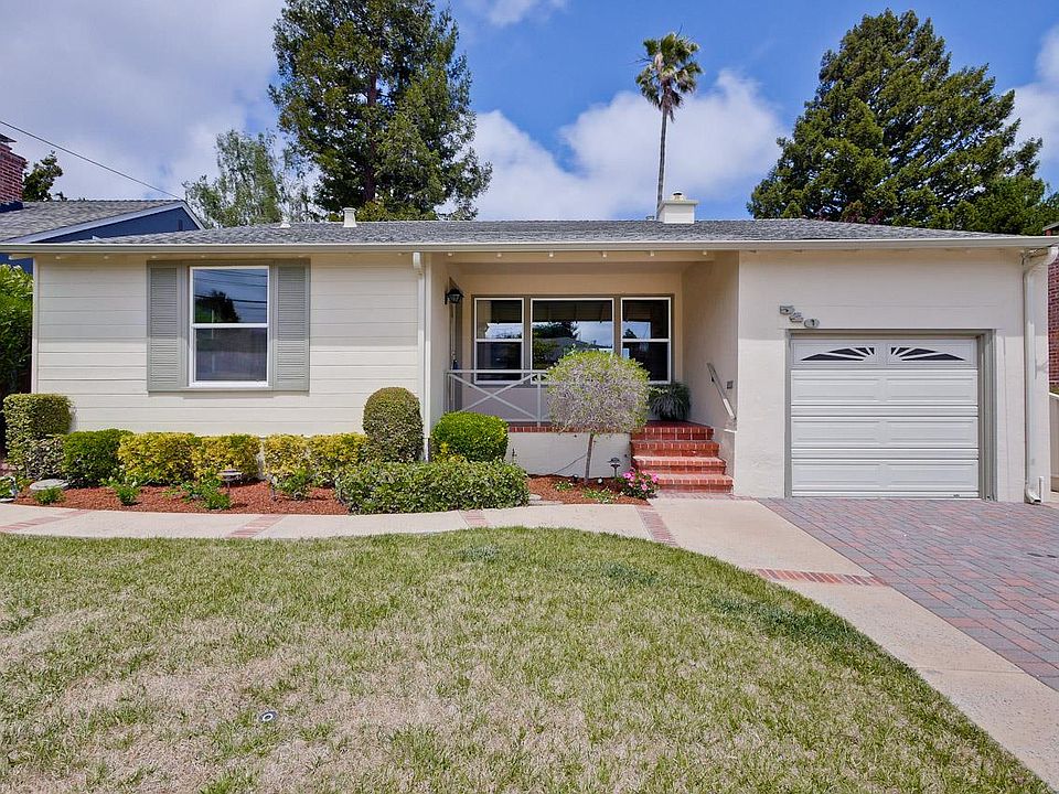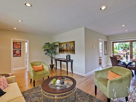 Charming bungalow with great curb appeal. Spacious living room has woodburning fireplace & large windows.Big dining area with sliding doors to rear deck.Updated kitchen features corian counters,breakfast bar,newer appliances,abundant prep space.Updated bath,beautiful hardwood floors,dual pane windows throughout,recessed lighting,freshly painted interior.1 car attached garage has built-in cabinetry & storage loft.Rear yard with large deck,patio,shed,fruit trees & raised garden.Near shopping & major freeways