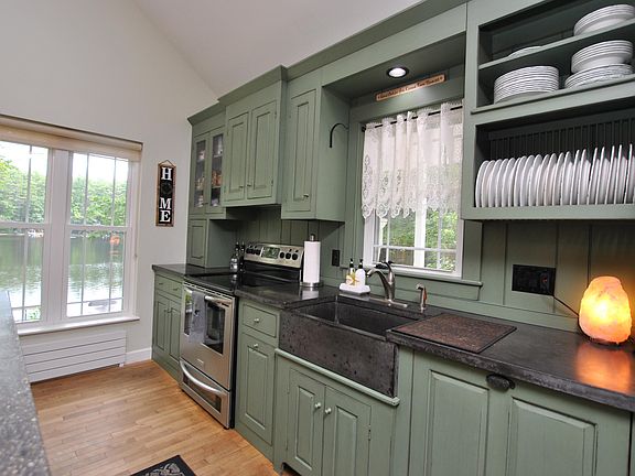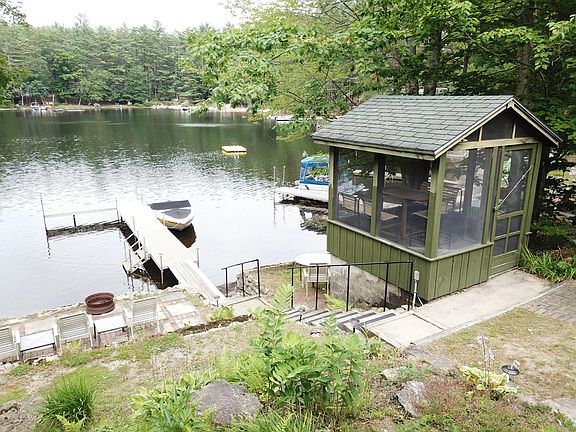 The thoughtful finishes at this property leave no box unchecked as it offers both a lakeside cottage and a guesthouse on the adjacent back lot. The main cottage greets you with classic hardwood floors, soft tones and a beautiful custom kitchen. There is an amply sized first floor bedroom with double closets, full bath, laundry and living room with a second floor loft bedroom. French doors lead the way to the lake or grab a tea and sit by the propane fireplace with a book. The guesthouse has a garage bay for the boat, first floor kitchen and dining area with a 3/4 bath off the back. As you go upstairs you will find a large bedroom with additional living space facing the lake. This level has 2 pull out couches and the cutest little bed nooks in the world. Combined the property can sleep up to 12 people and offers a wide variety of hosting options. A pleasure to show and ready for immediate occupancy - this remarkably maintained property is the one that has been waiting for you.