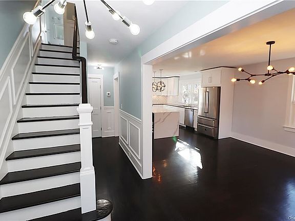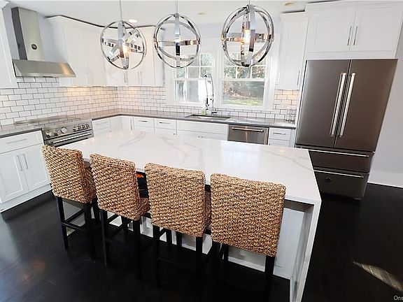 Better than new! Retreat to this totally renovated four bedroom Colonial with stunning outdoor setting. Step inside to a spacious living room drenched in natural light with a wood burning fireplace. Prepare all your meals in the eat-in kitchen with quartz island, granite counters, stainless steel appliances, and door out to the backyard. Formal dining room, bedroom, and full bath complete the main level. Upstairs is a primary suite with walk-in closet and luxury bath, two additional generous sized bedrooms, and full bathroom. The walk-out lower level is 3,000 sqft and features an extra large recreation room with summer kitchen and full bath, making entertaining a breeze. 2 car attached garage and driveway to park all your vehicles. 10 minutes to Metro North and 2 minutes to Hutchinson River Parkway. Centrally located and close to Purchase Elementary School as well as Purchase and Manhattanville Colleges, under 10 minutes to downtown White Plains and Rye. Only 35 minute train ride to Manhattan!