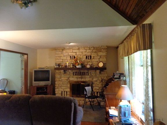 Tongue and groove ceiling in great room, rock fireplace. Wood stove down. Open loft. 3 bed, 2 1/2 baths. Master on main floor. Very cozy setting on 2.6 +/- acreage. One car garage. $10,000 allowance for siding or other updates. Must see to appreciate.