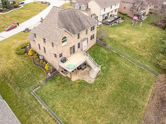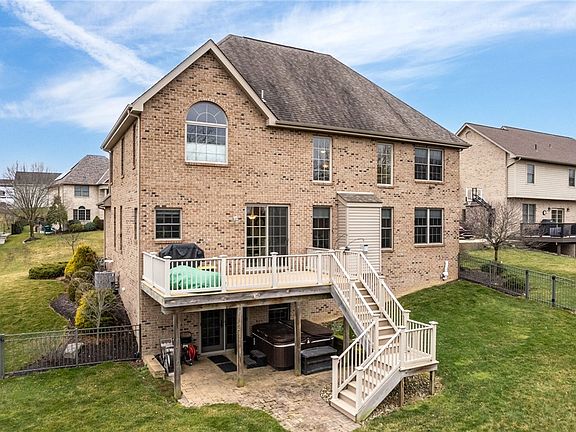 Immaculate Custom 5 Bed/4b brick home conveniently located in Chartiers Twp. The home was desinged & finished w/extreme attention to detail. The Grand entry & flawless hardwood flooring welcome you ~ 21'soaring ceilngs, gas fireplace,& tandom oversize windows draw you into the Great Room. This also opens to the EIK w/SS appliances, ceramic flooring, extra tall cabinets/granite counters as well as the main level laundry room. BONUS **main level 5th bedroom w full bath** 4 upper bedrooms and cat walk over looking the entry and family room all w hardwood floors. Private owners suite w/luxurious resort style en suite w/modern finishes and walk in. But wait~ the professionally finished LL will take your breath away! 10' ceilings,crown molding, procelain tiled floors, chiseled granite bar w/stone base, stacked stone ventless fireplace, roman columns to Theatre area w coffered ceiling, powder room, walk out to covered patio and hot tub. Maintenance free deck/ Fenced yard w beautuiful views.